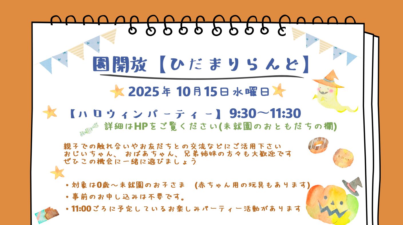 10/15(水)【園開放】ひだまりらんどの案内《ハロウィン》