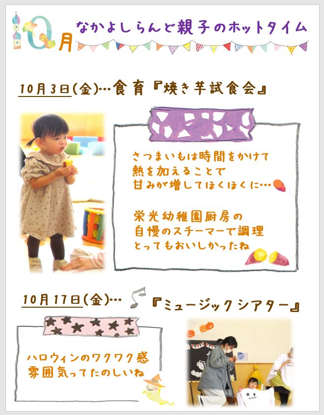 認定こども園 栄光幼稚園 > お知らせ > なかよしらんど💗ほっとな速報【10月のお楽しみ】